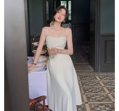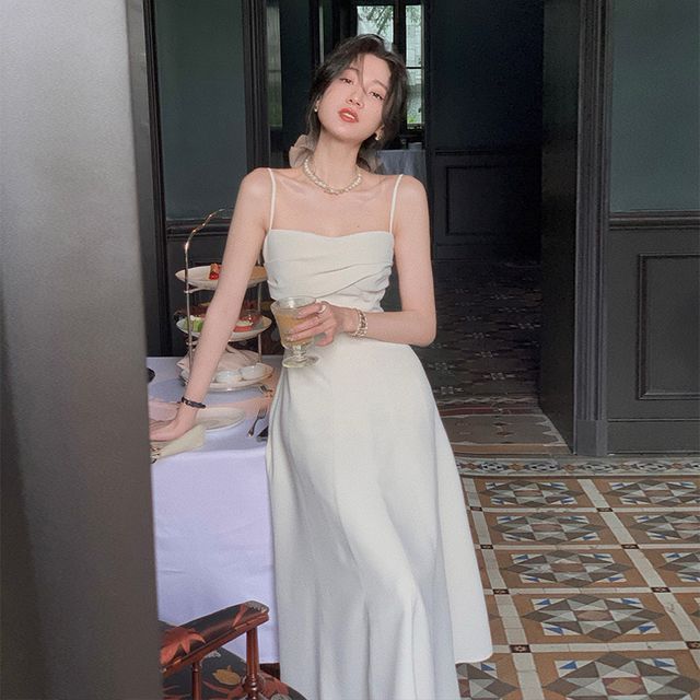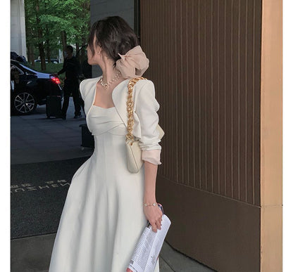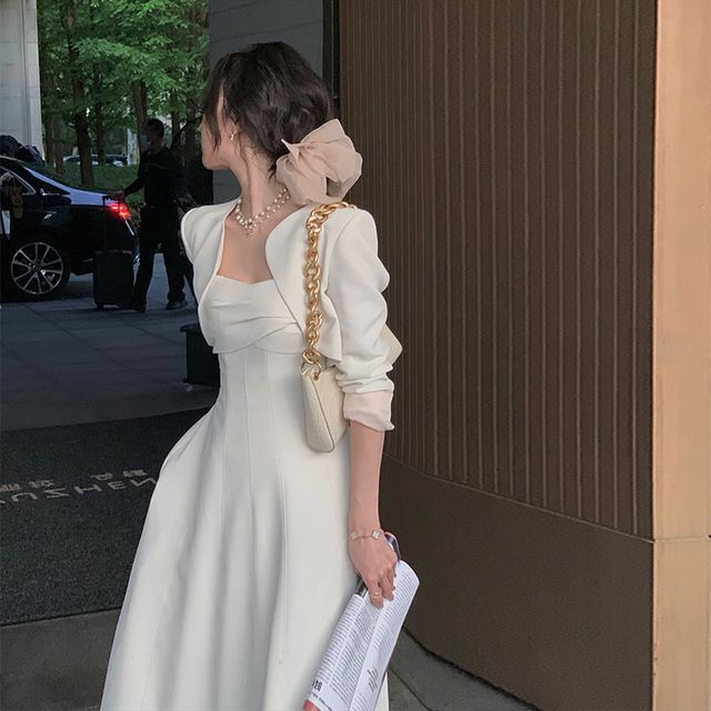 Long-Sleeve Cropped Plain Blazer / Spaghetti-Strap Plain Midi A-line Dress (Various Designs)