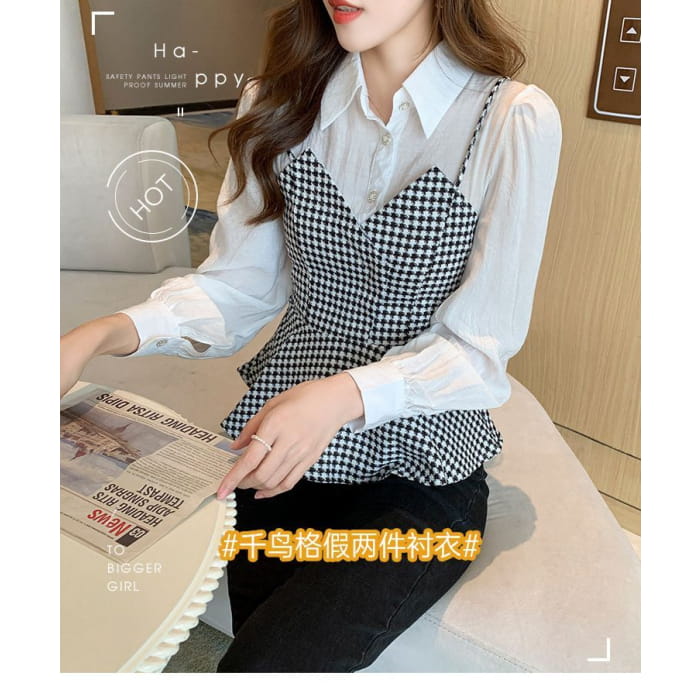Zweiteiliges Oberteil mit langen Ärmeln und Hahnentrittmuster