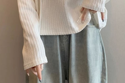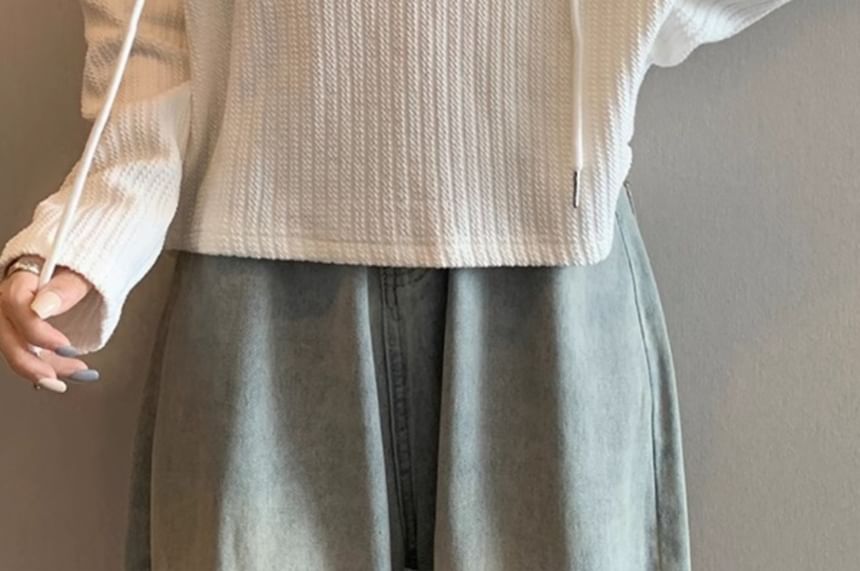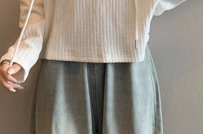 Long-Sleeve Letter Embroidered Hooded Ribbed Tee