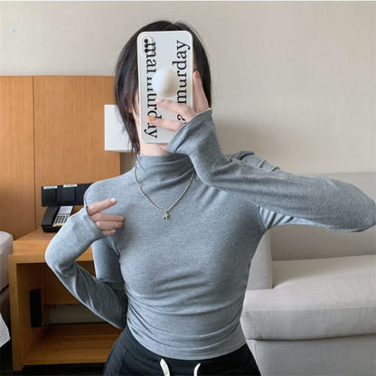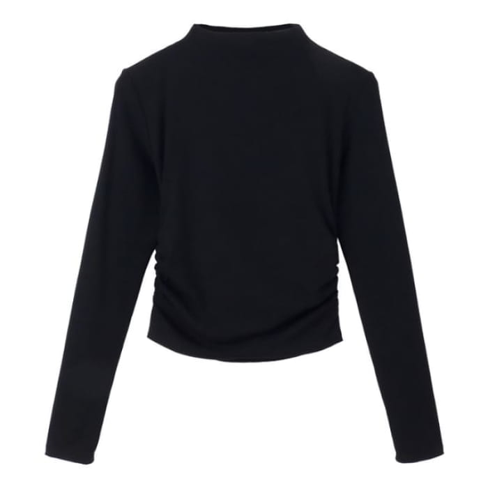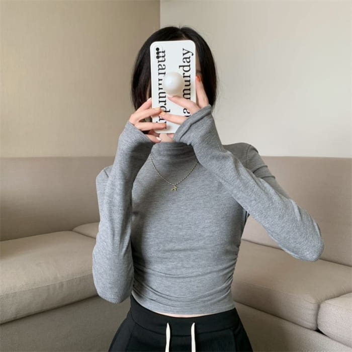 Langärmliges, schlichtes Crop-T-Shirt mit Stehkragen