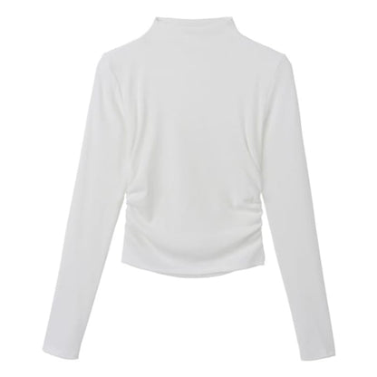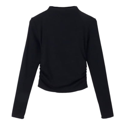 Langärmliges Crop-T-Shirt mit Stehkragen und einfarbigem Muster