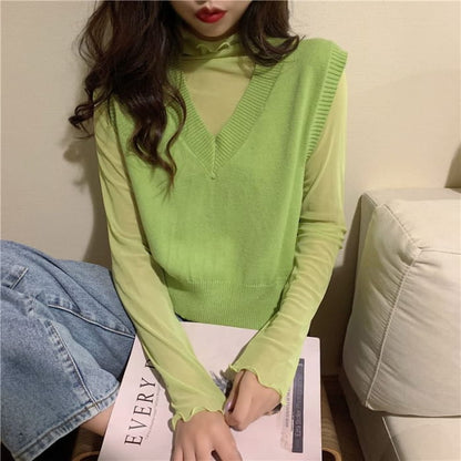 Langärmliges, schlichtes, transparentes Top mit Rollkragen