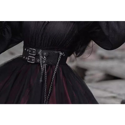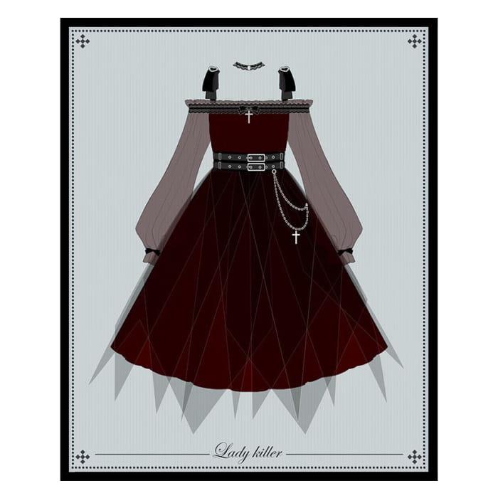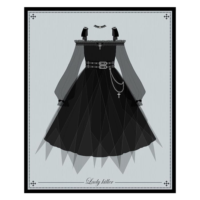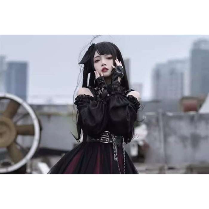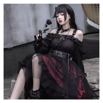 Langärmliges schulterfreies Lolita-Top / A-Linien-Rock mit hoher Taille / Spitzensocken (verschiedene Designs)