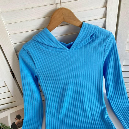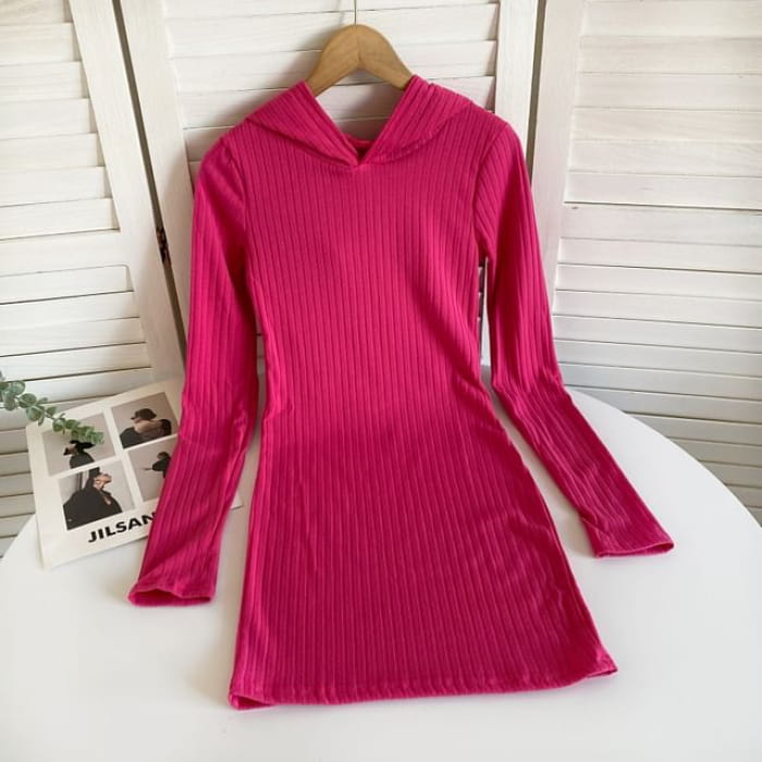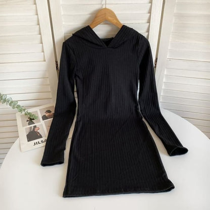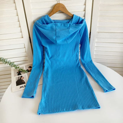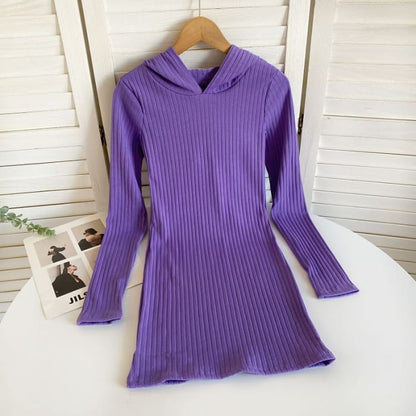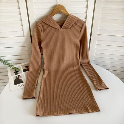 Langärmliges, schlichtes Strick-Etuikleid mit Kapuze
