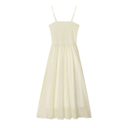 Long-Sleeve Plain Shirt / Spaghetti Strap Plain Maxi A-Line Dress