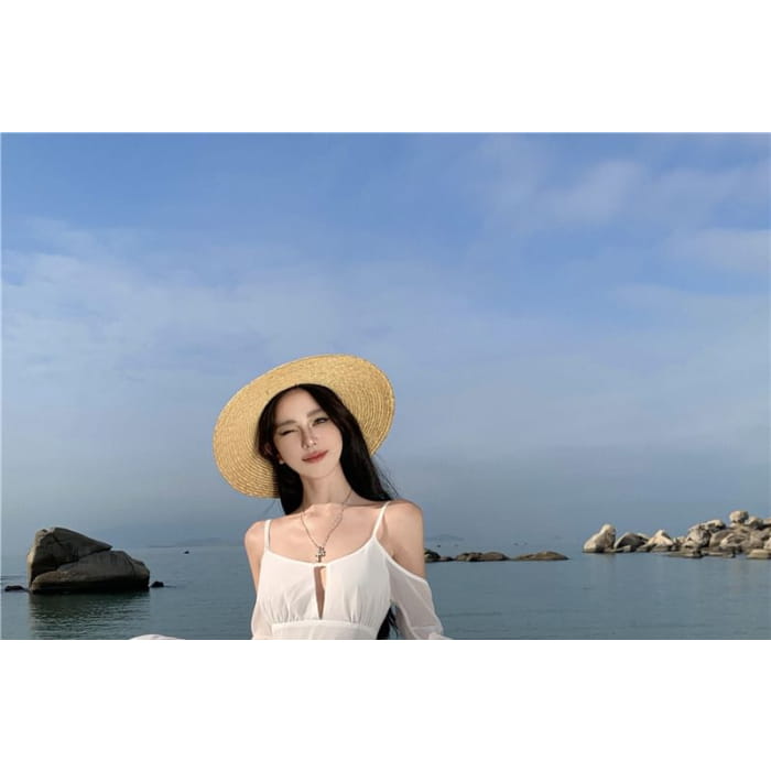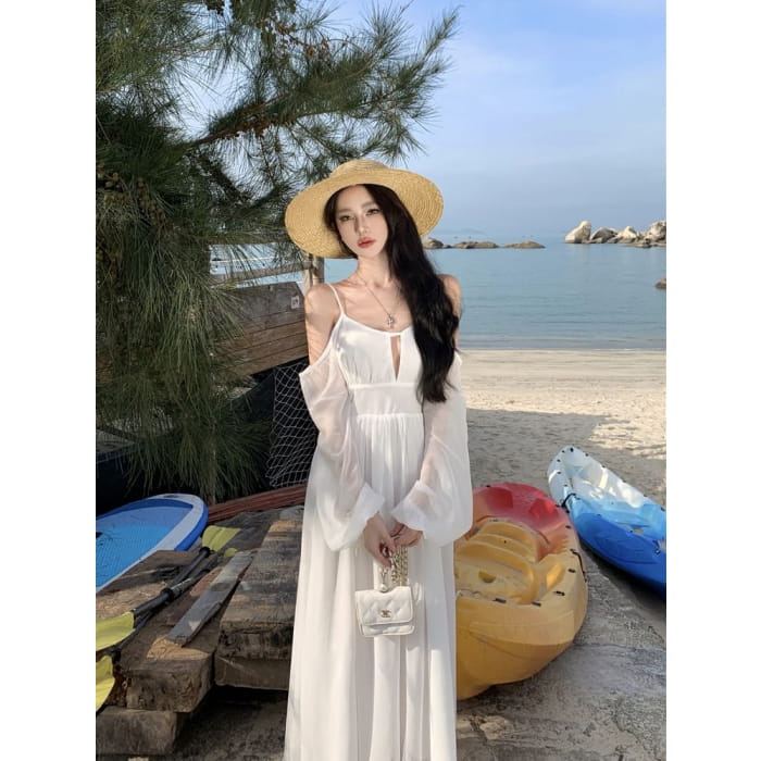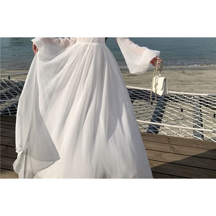 Langärmliges, schlichtes Maxi-A-Linien-Kleid mit U-Ausschnitt