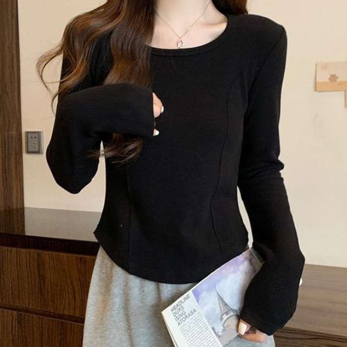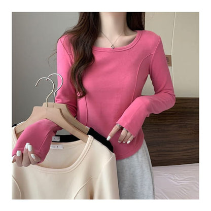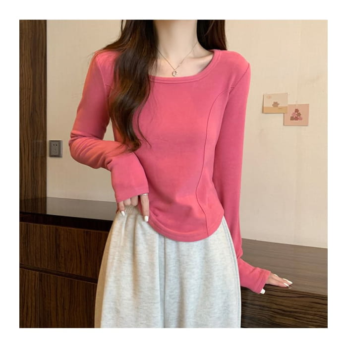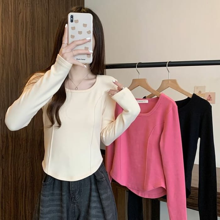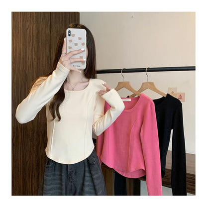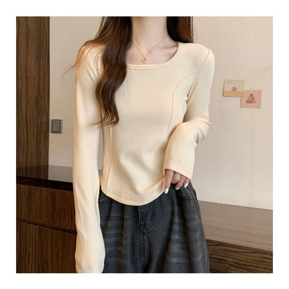 Langärmliges, schlichtes T-Shirt mit quadratischem Ausschnitt