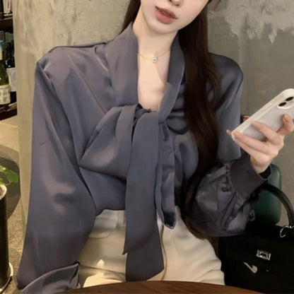 Langärmlige Bluse mit Bindekragen in Uni