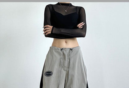 Low Waist Color-Block Loose-Fit Wide-Leg Sweatpants