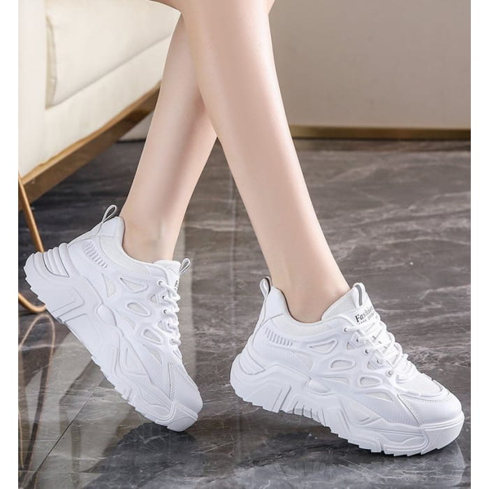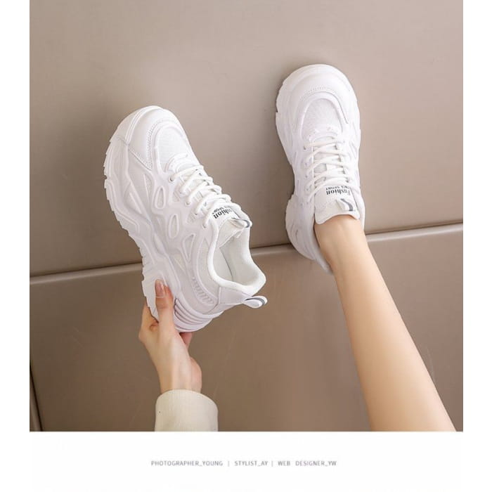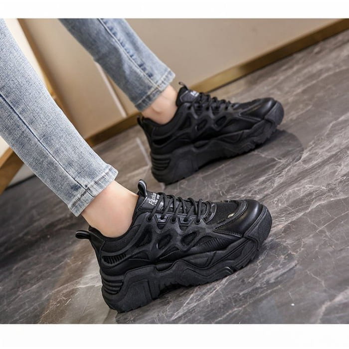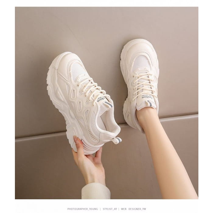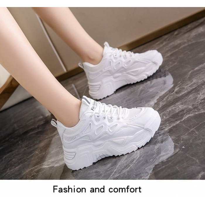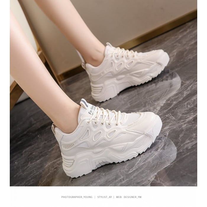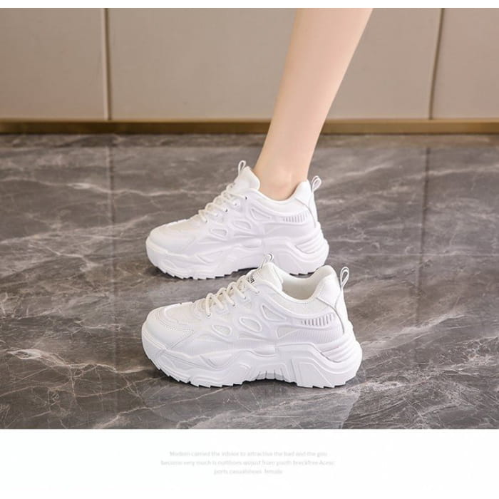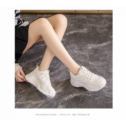 Plateau-Sneakers mit Mesh-Einsatz und Schnürung