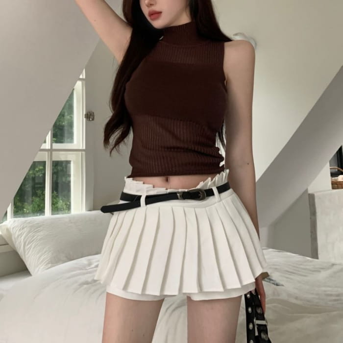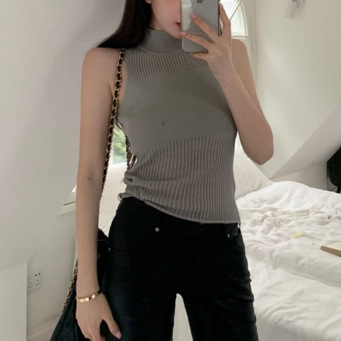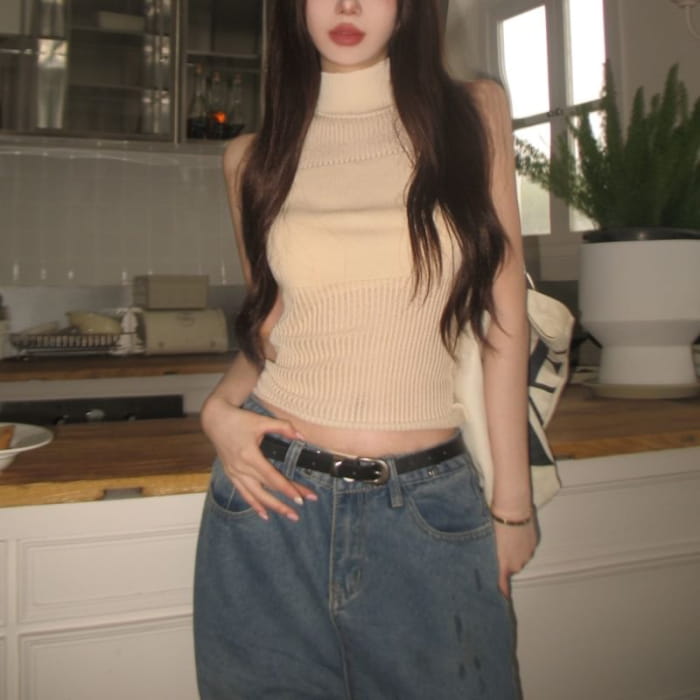 Einfarbiges Tanktop aus Rippstrick mit Rollkragen