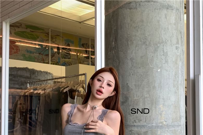 Neck Low Tank Satin Rise Sequin Scoop Top Undershorts Plain Lace Trim Shorts Mid /