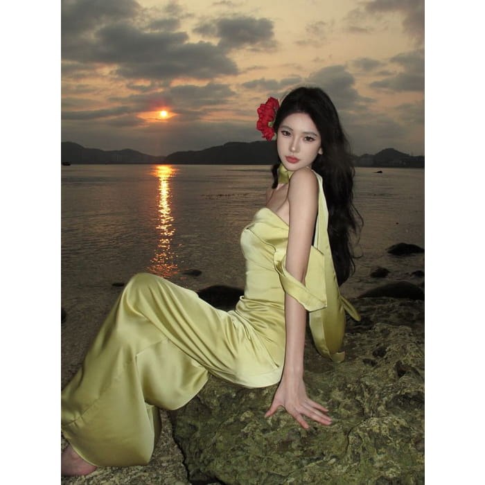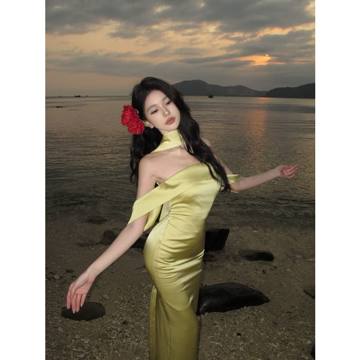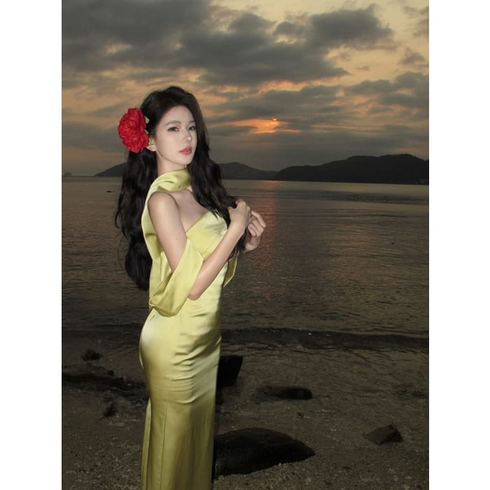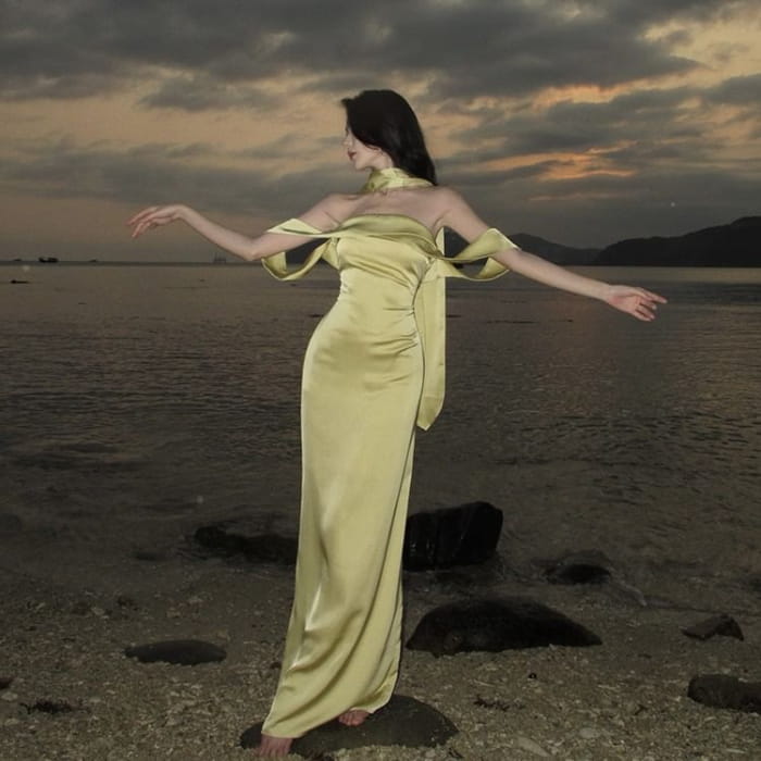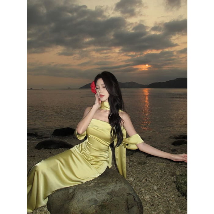 Schulterfreies, schlichtes Maxi-Etuikleid