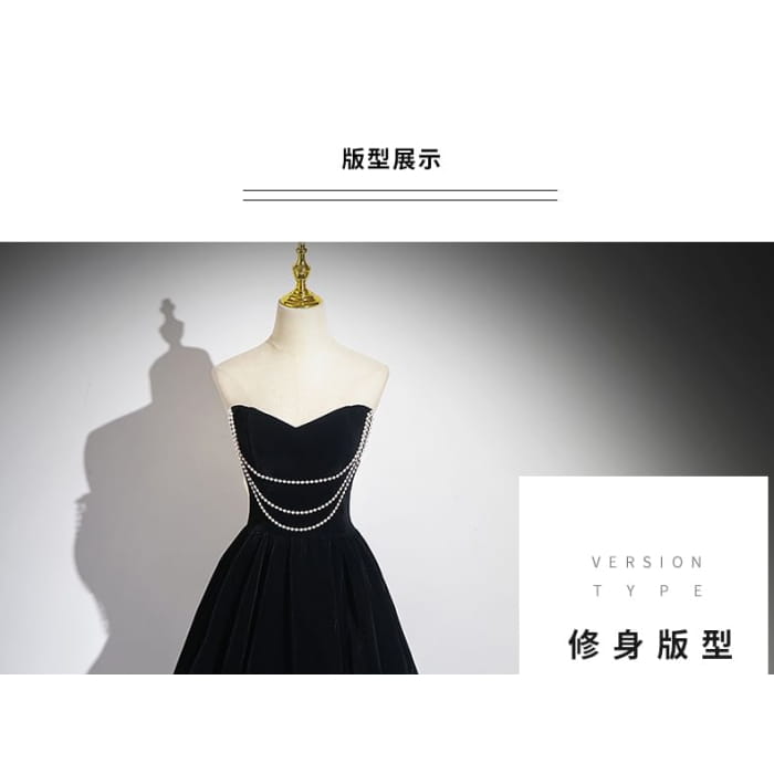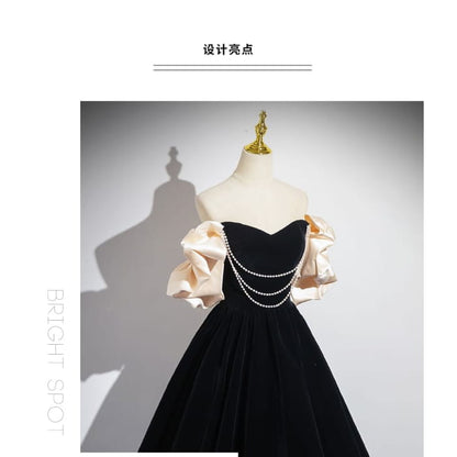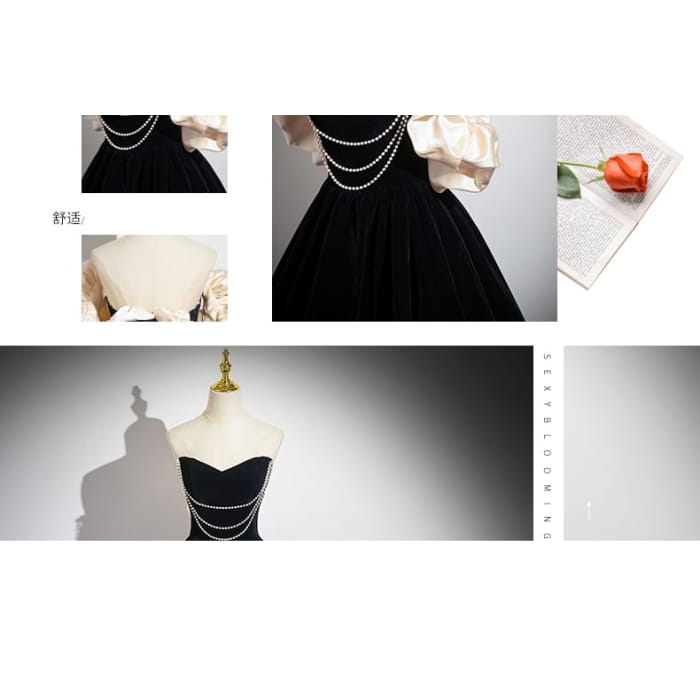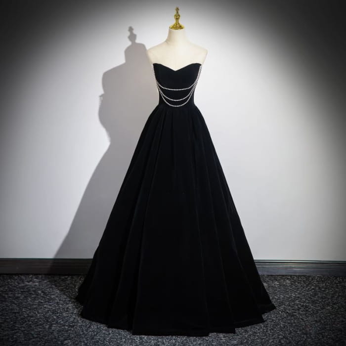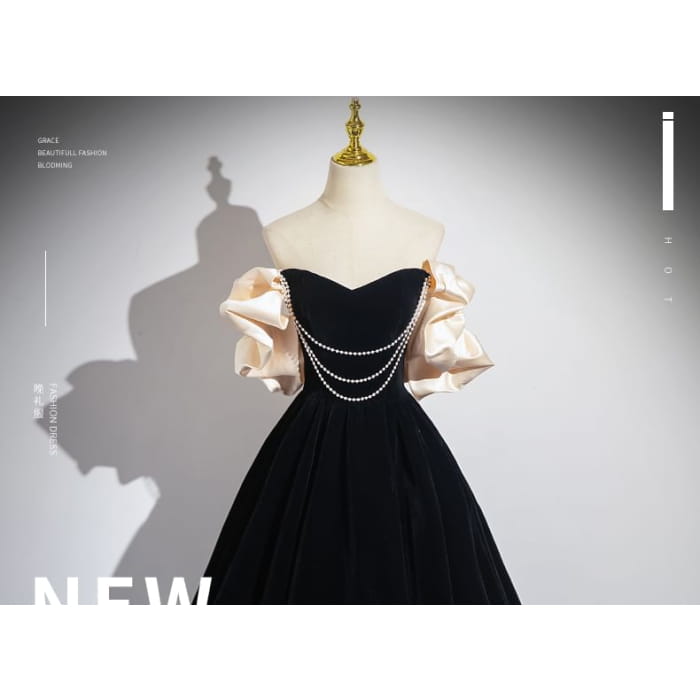 Schulterfreies, zweifarbiges, perlenbesetztes A-Linien-Ballkleid