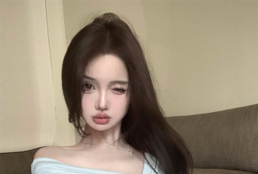 One-Shoulder Plain T-Shirt Short-Sleeve