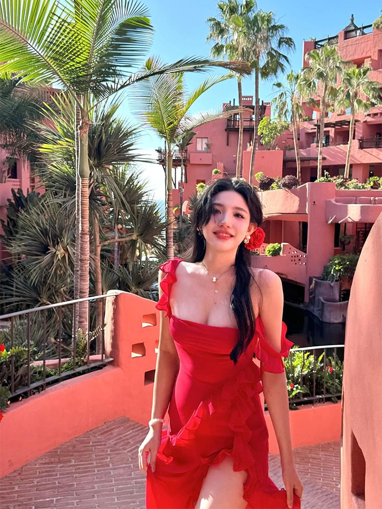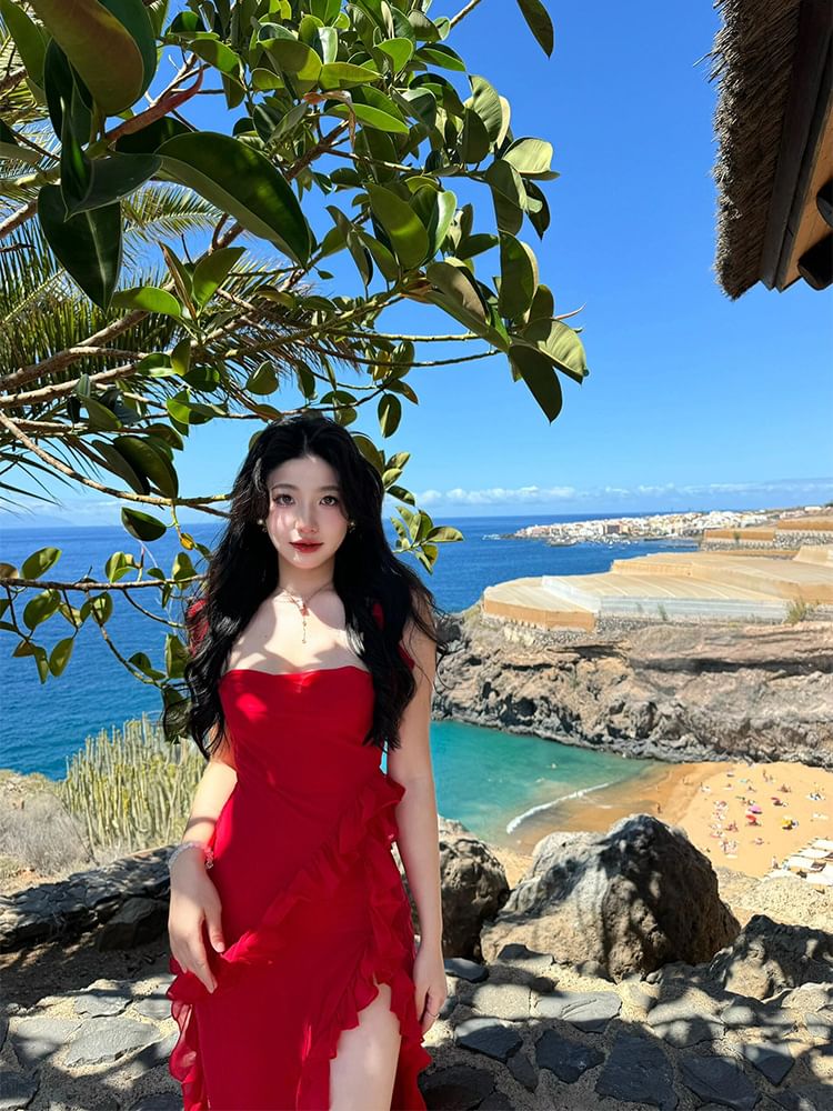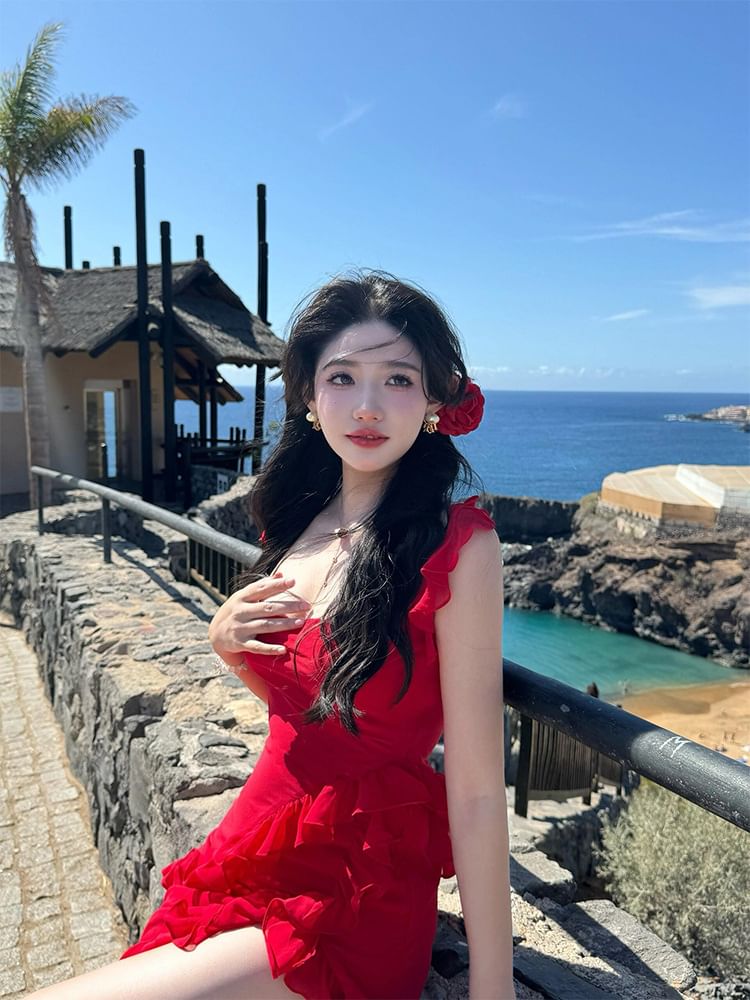 Open Sleeveless Plain Neck Square Dress Back Slit Bodycon Trim Ruffle Maxi
