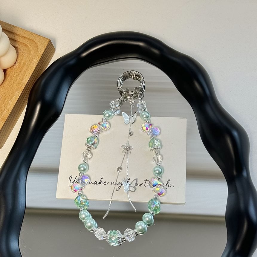 Pad Lanyard Phone Faux Butterfly with Pearl Strap Wrist