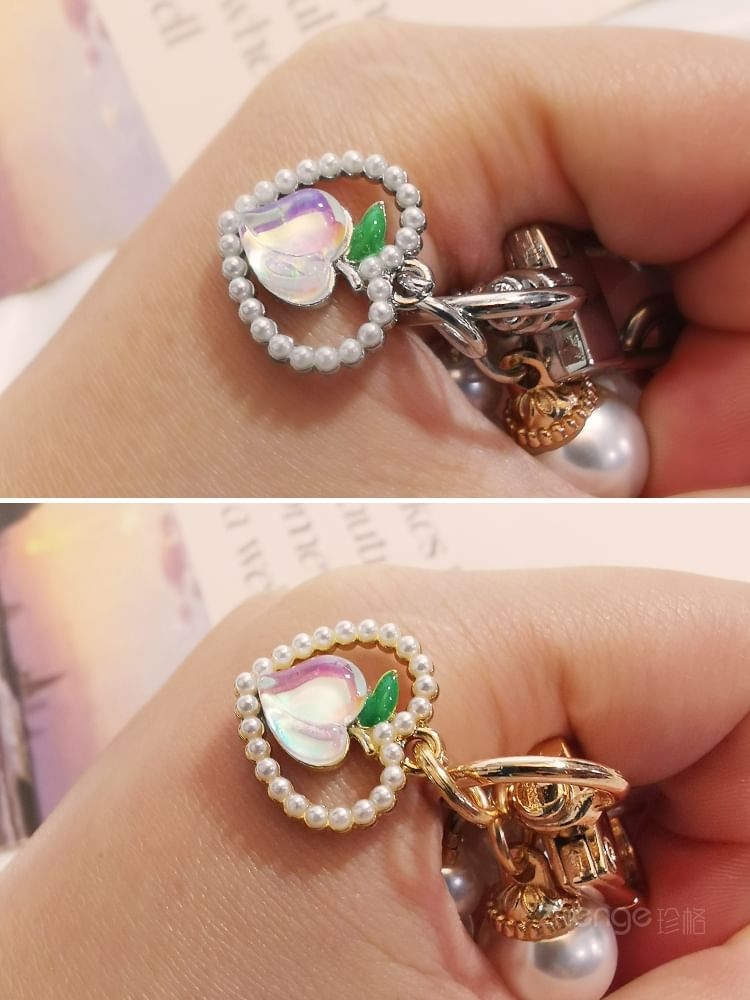 Peach Faux Pearl Phone Strap with Lanyard Pad