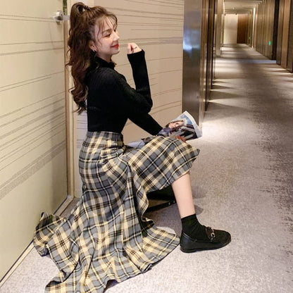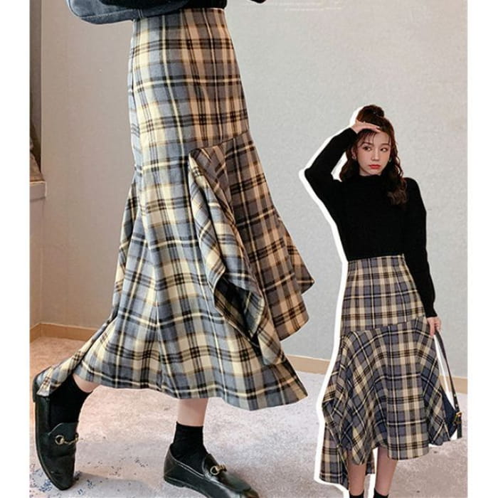Meerjungfrauenrock mit kariertem asymmetrischem Saum