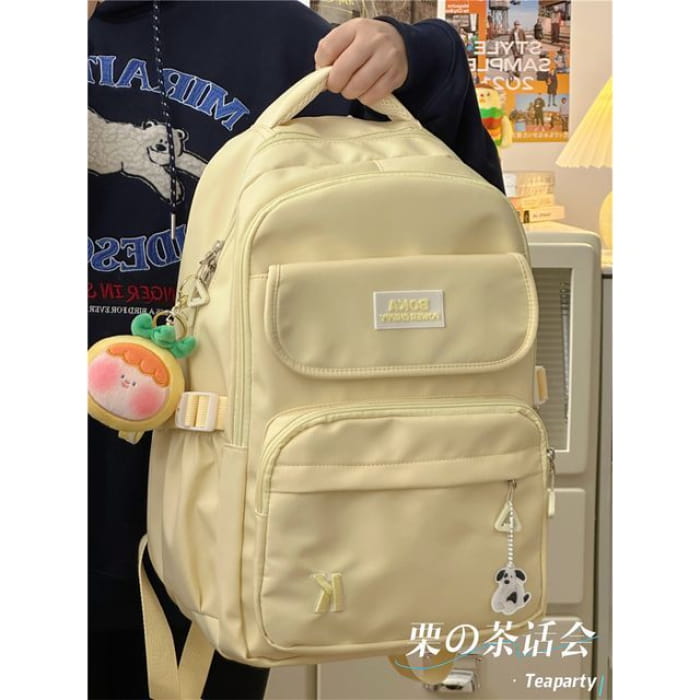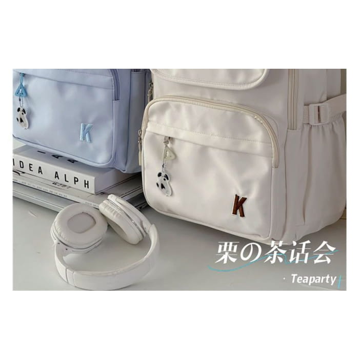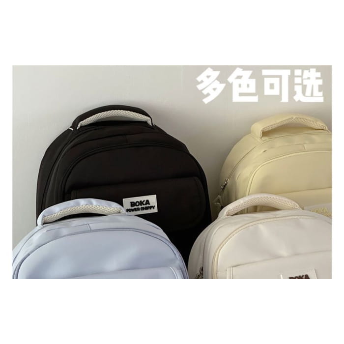 Plain Lettering Logo Buckled Backpack