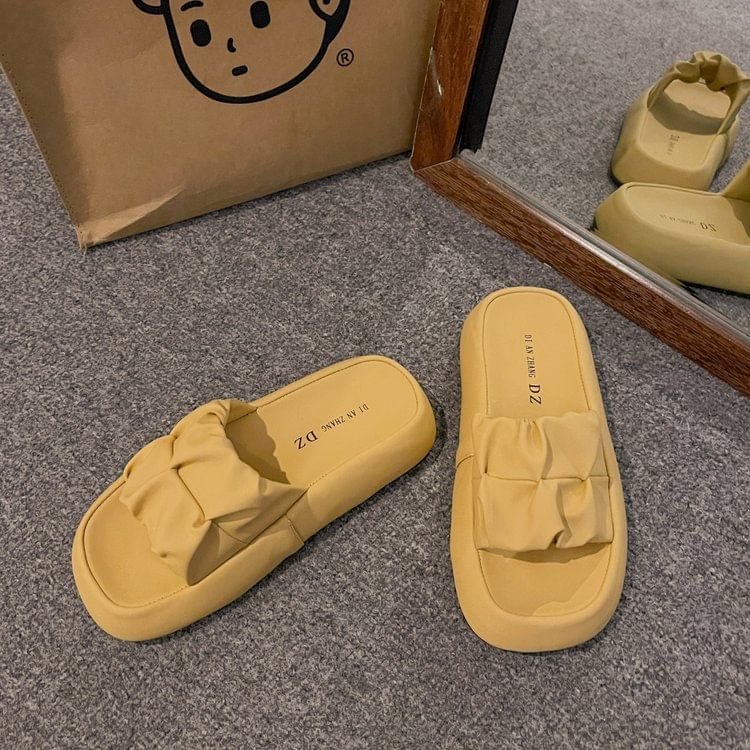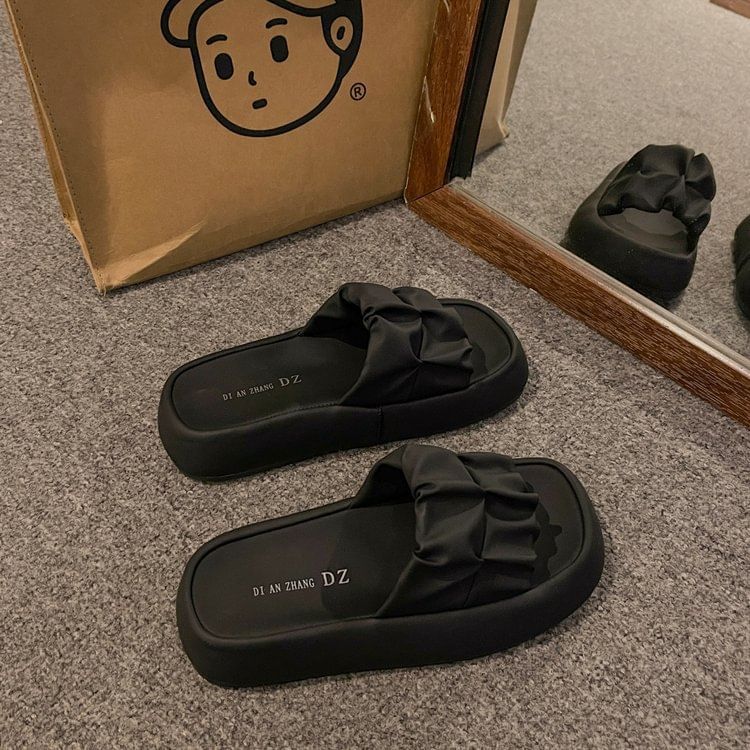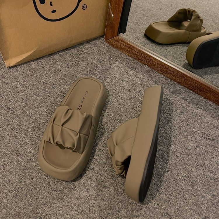 Platform Plain Ruched Faux Leather Slide Sandals