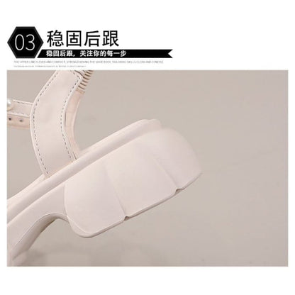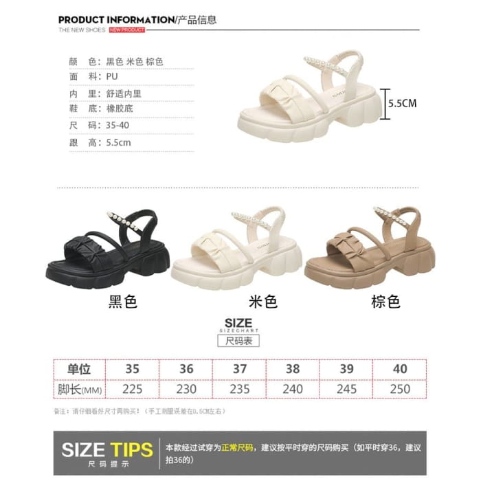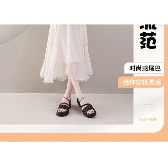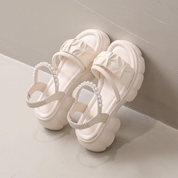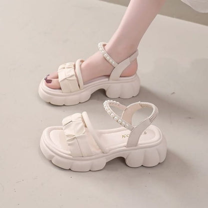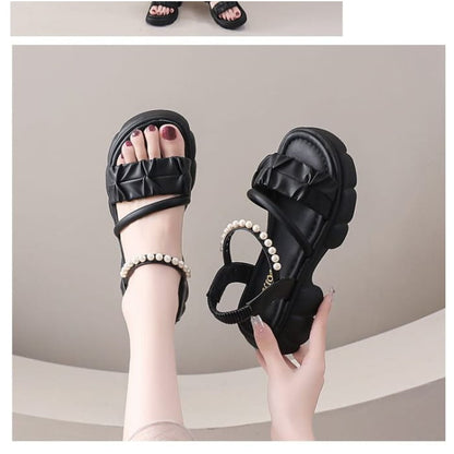 Sandalen aus Kunstleder mit Plateau-Fesselriemen, Kunstperlen-Akzent und Rüschen