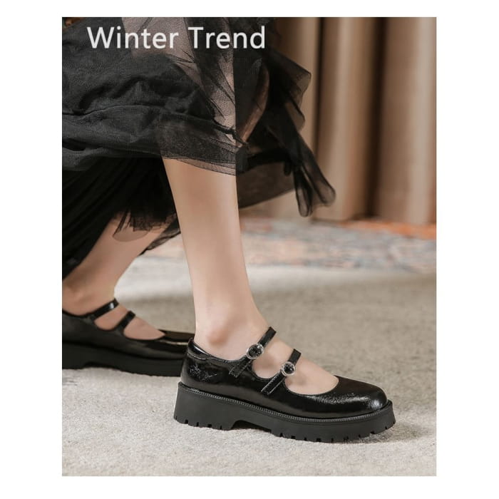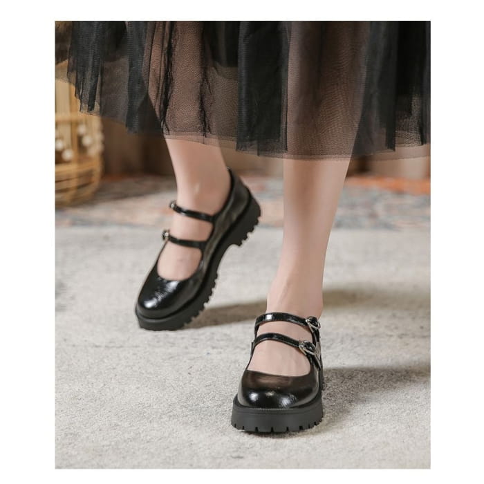 Mary-Jane-Schuhe aus Kunstleder mit Plateausohle
