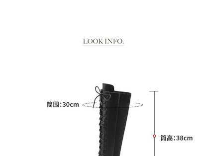 Platform Lace Up Panel Faux Suede Knee High Boots
