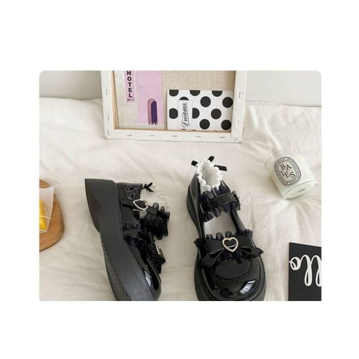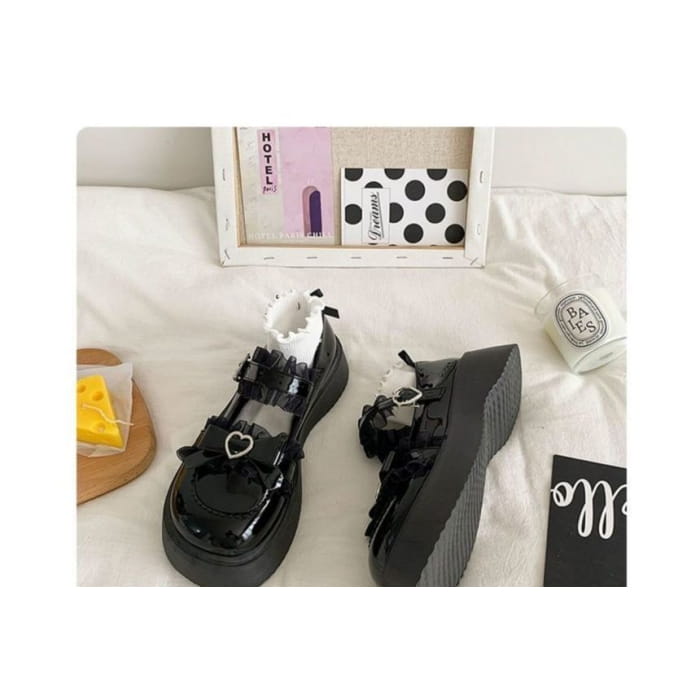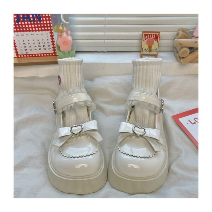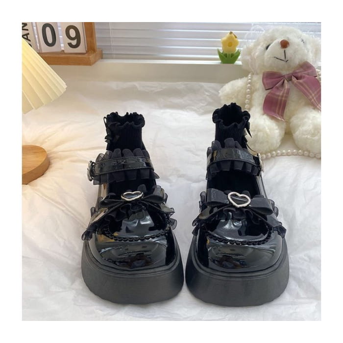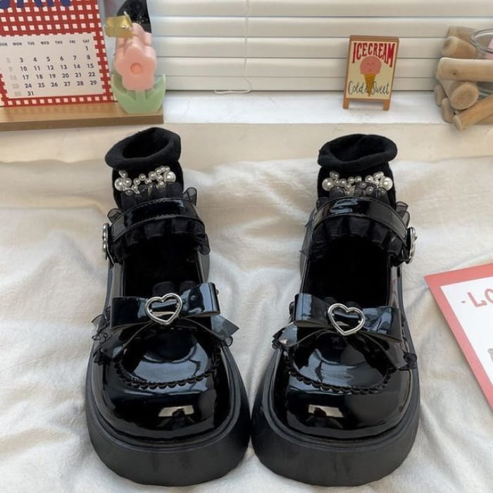 Mary-Jane-Schuhe aus Lackleder mit Plateau und Herzschnalle