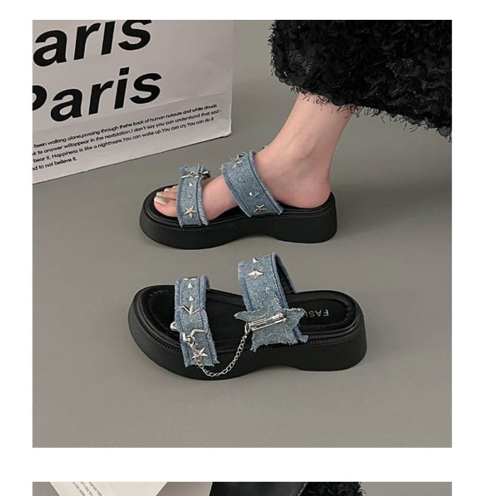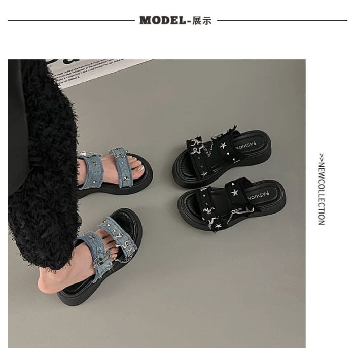 Sandalen aus Denim mit Plateau-Stern und Schnalle