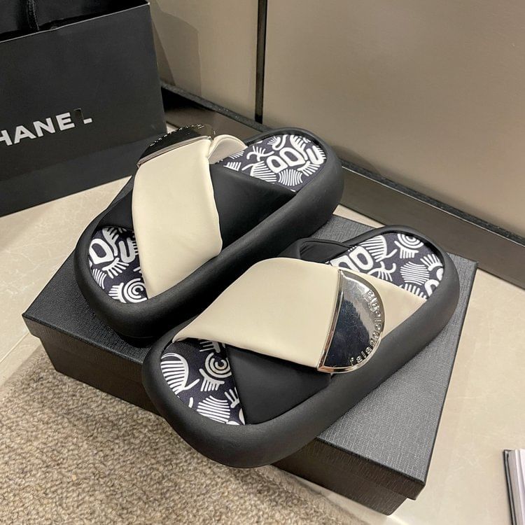 Platform Strap Cross Sandals Two Leather Faux Tone