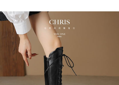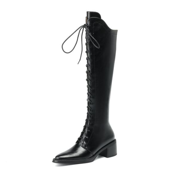 Pointed Toe Lace Up Knee High Boots