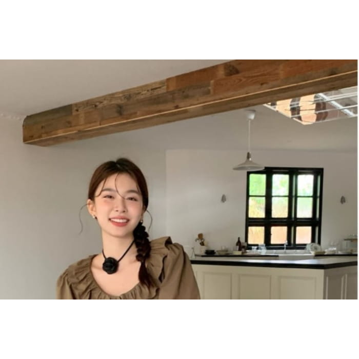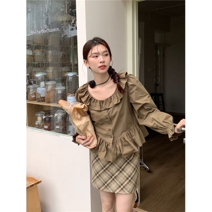 Bluse mit Puffärmeln, Kragen und schlichter Rüschenbluse