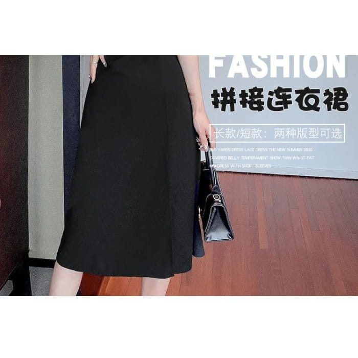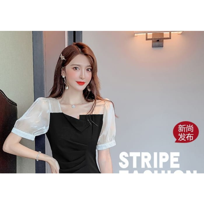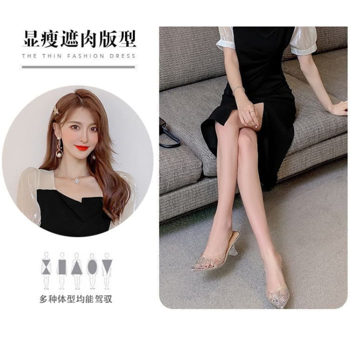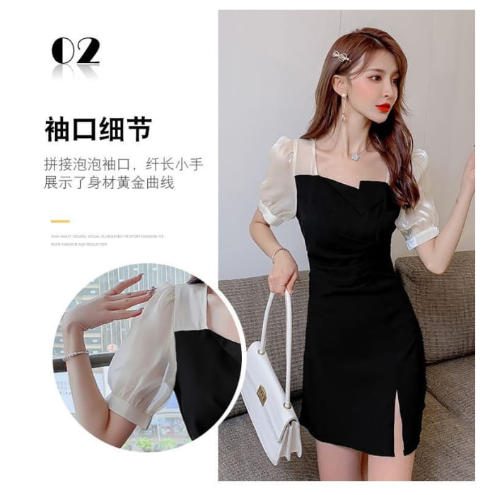 Etuikleid mit Puffärmeln, quadratischem Blumenschlitz