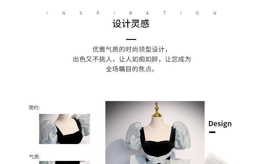 Puff-Sleeve Square Neck Two Tone Bow Back Mermaid Evening Gown
