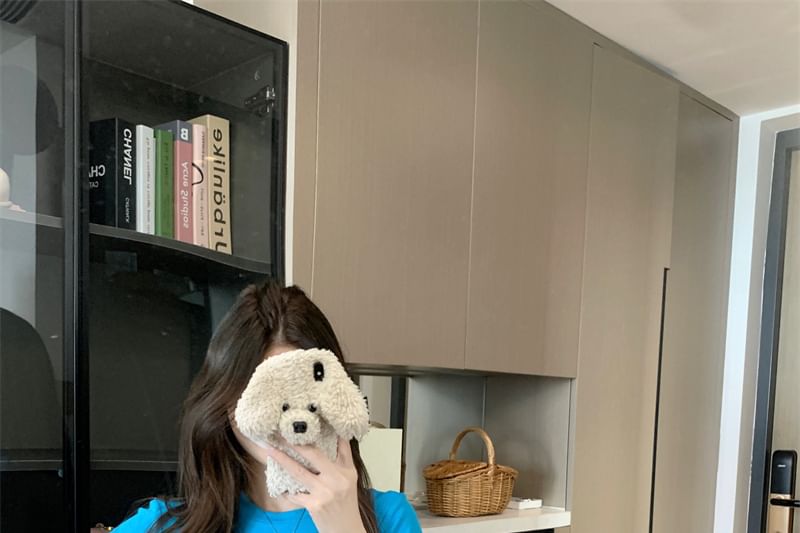 Rhinestone Round Neck Sleeve Short Plain T-Shirt