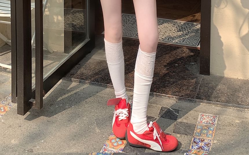 Rise Lace Skirt Ruffle Lace-Up Mini Plain High A-Line Trim