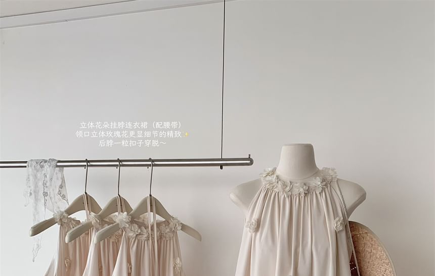 Halter Plain Flower Detail Ruffle Mini Sundress