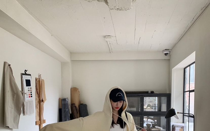 Set: Drawstring Drop Shoulder Plain Zip Hoodie + High Waist Plain Mini A-Line Skirt