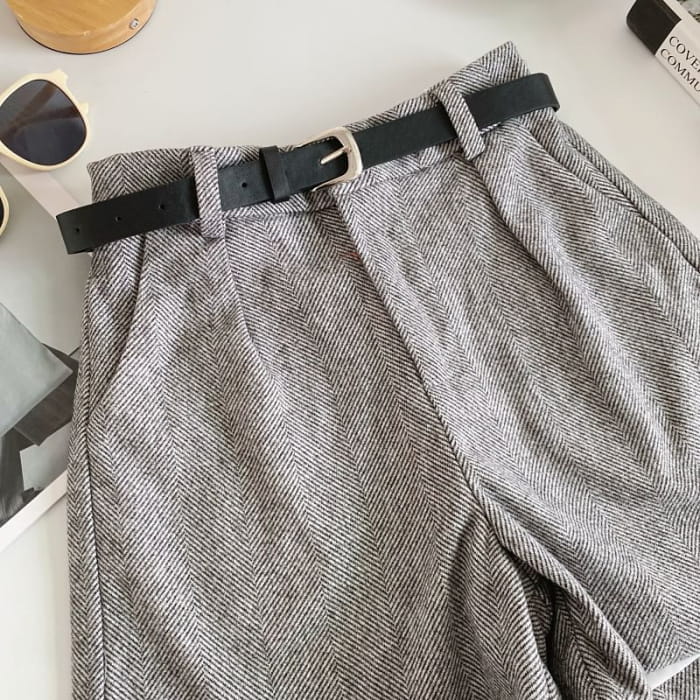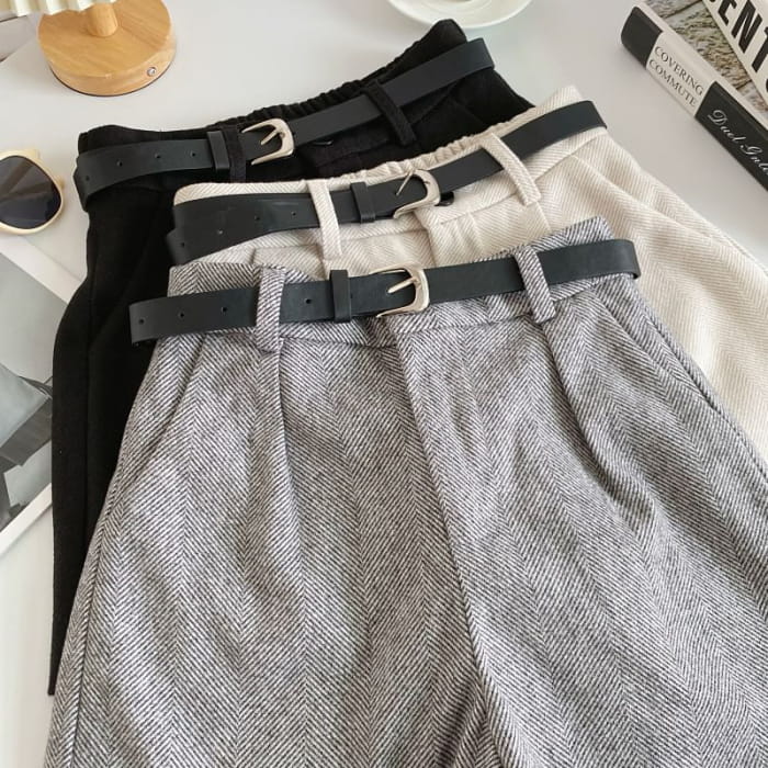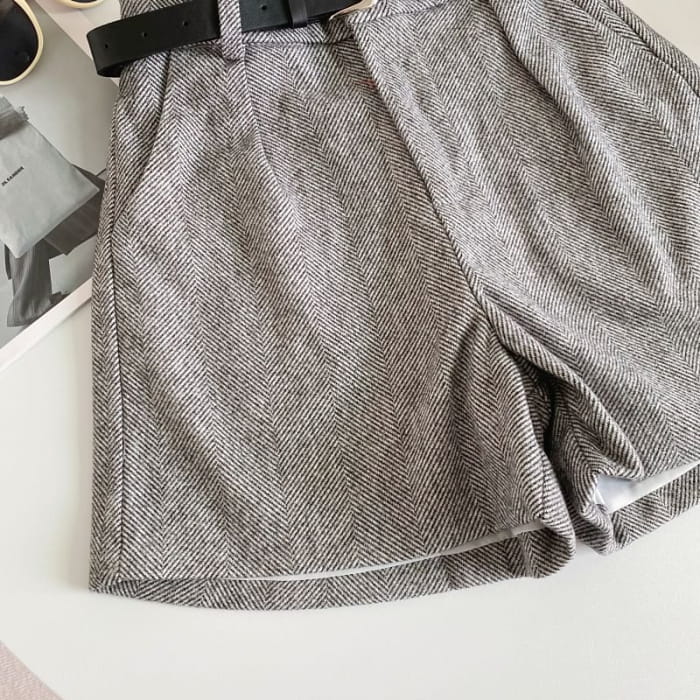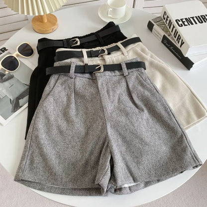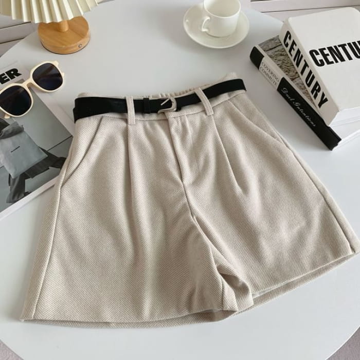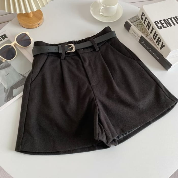 Set: Schlichte Shorts mit hoher Taille + Gürtel aus Kunstleder
