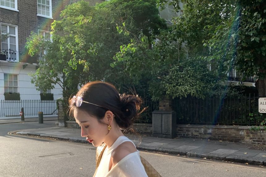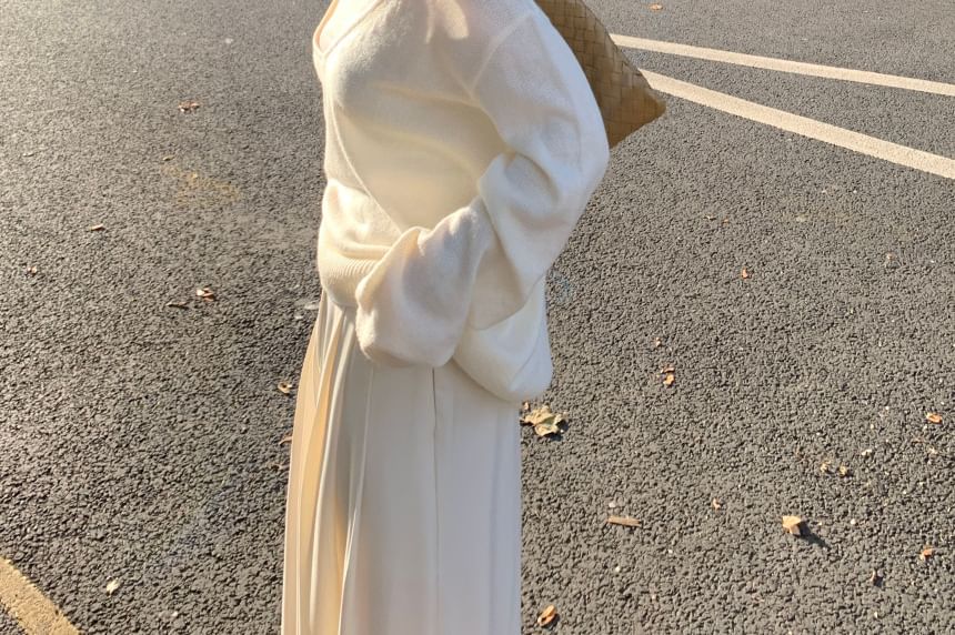 Set: Long Sleeve Deep Plunge Plain Knit Top + Crew Neck Plain Tank Top