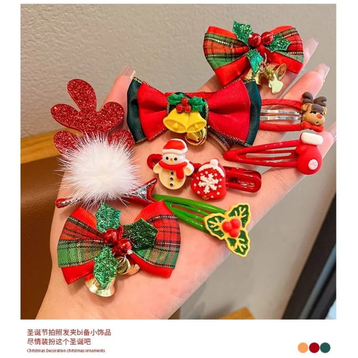 10er Set: Haarspange / Haargummi / Haargummi mit weihnachtlichem Cartoon-Motiv