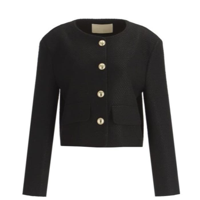 Set: Schlichte Tweed-Knopfjacke + High Rise Mini-A-Linienrock