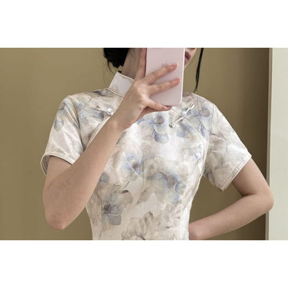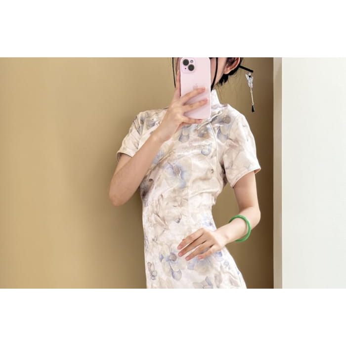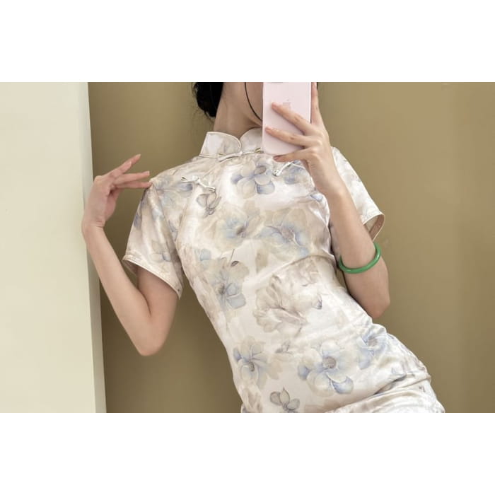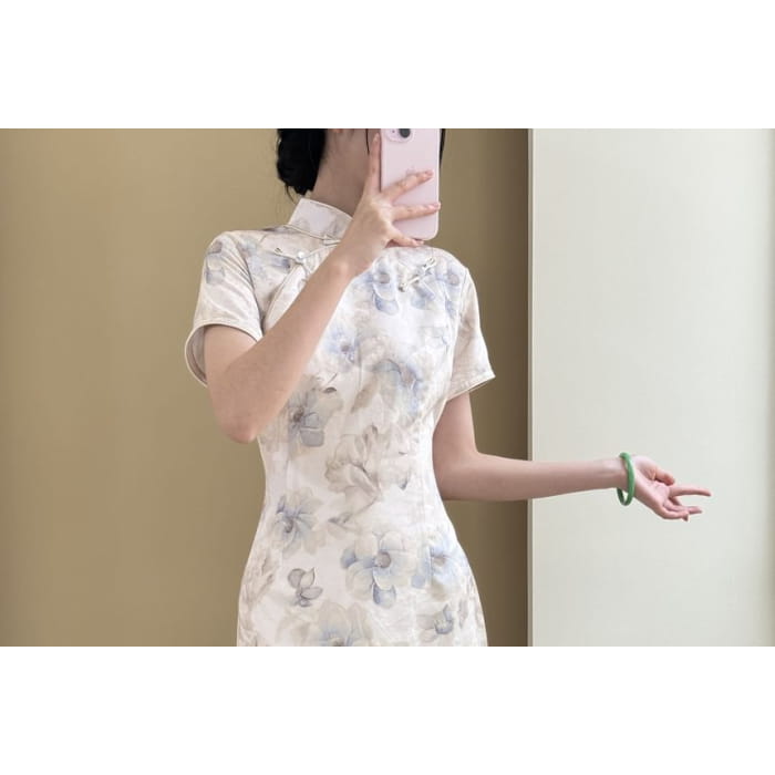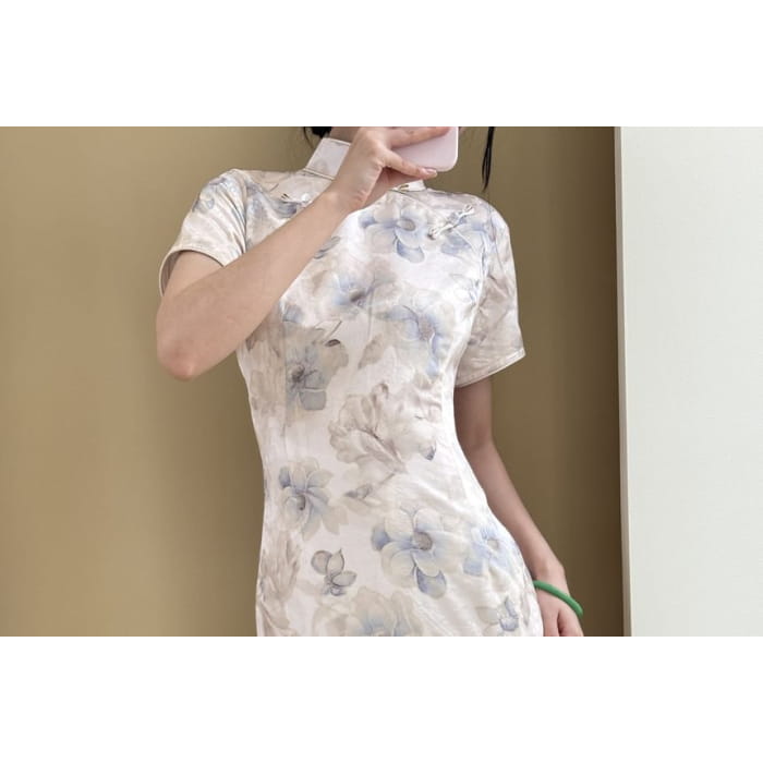 Kurzarm-Maxi-Qipao mit Blumenmuster