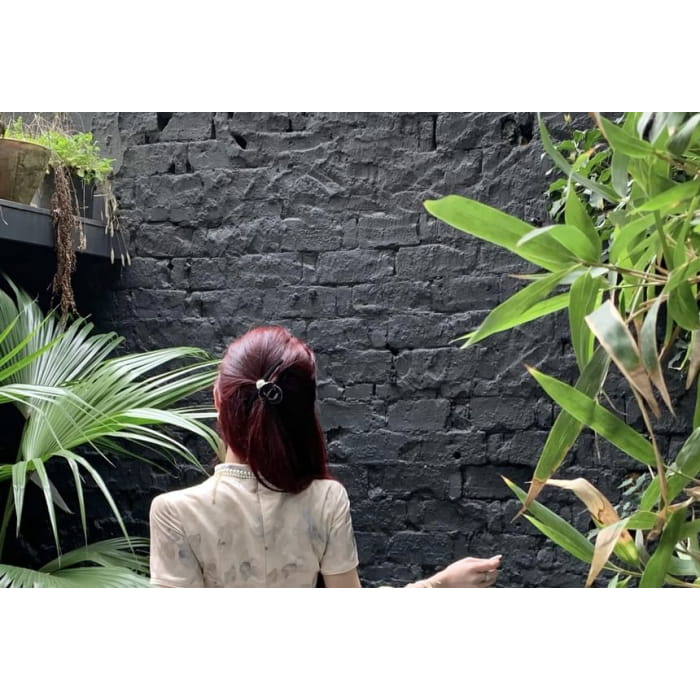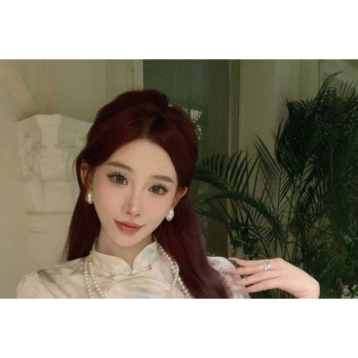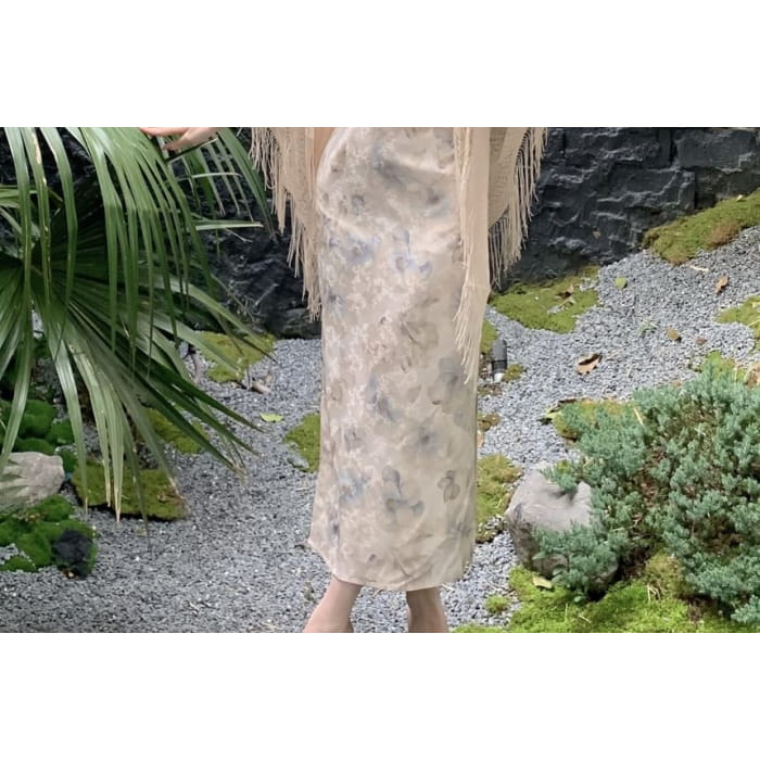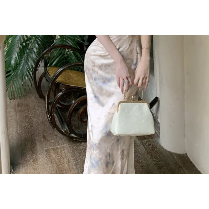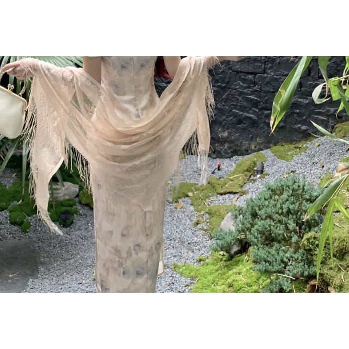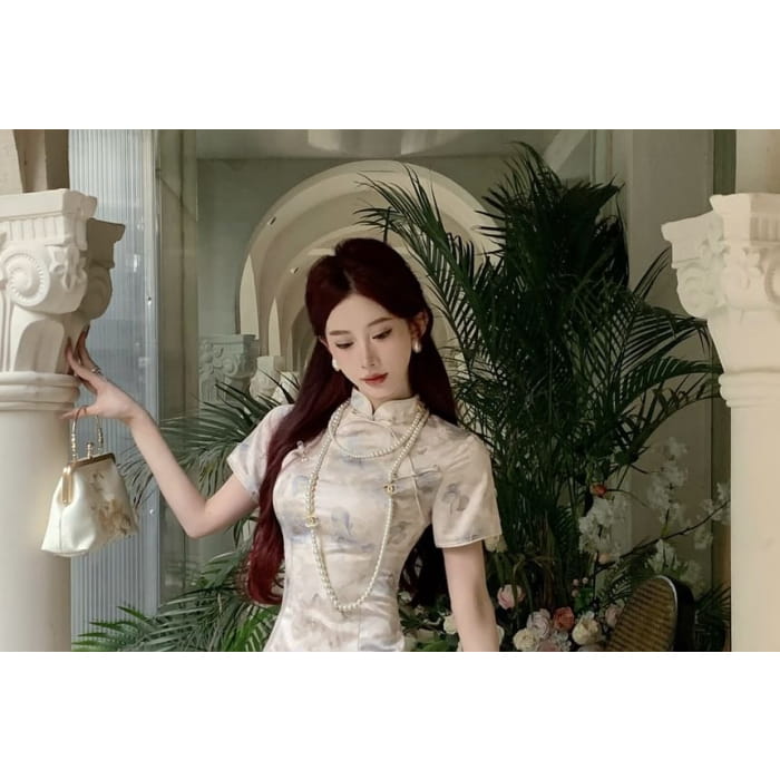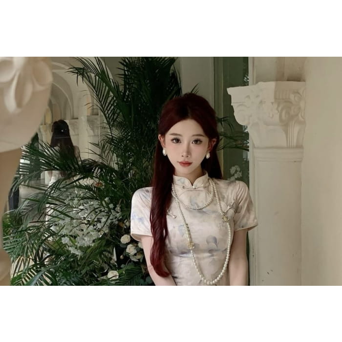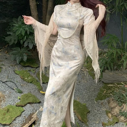 Kurzärmliges Maxi-Qipao mit Blumenmuster und Seitenschlitz