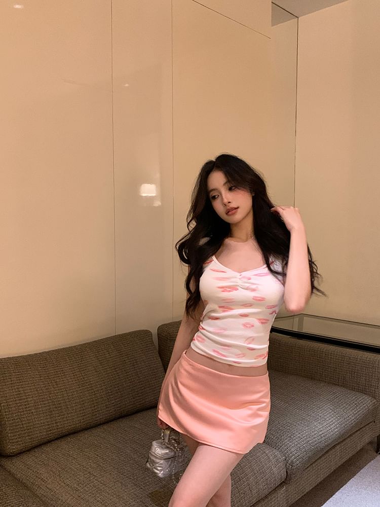 Short-Sleeve Scoop Neck Print T-Shirt / Mini Skirt