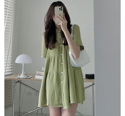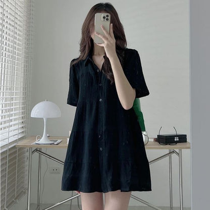 Short-Sleeve Plain Mini A-Line Shirt Dress