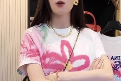 Short-Sleeve Round Neck Floral Print T-Shirt