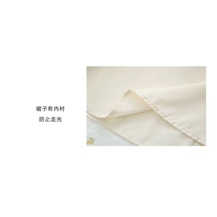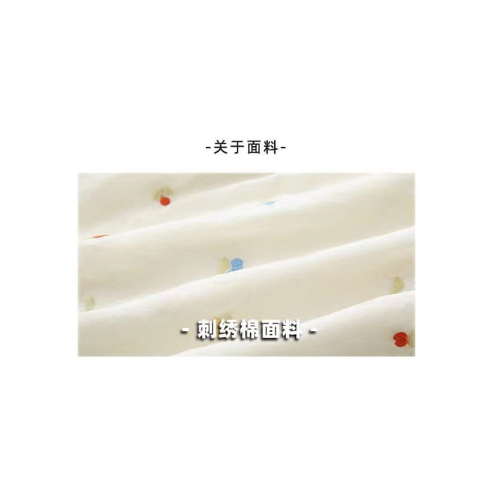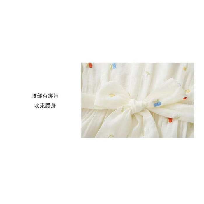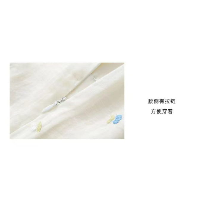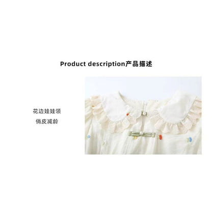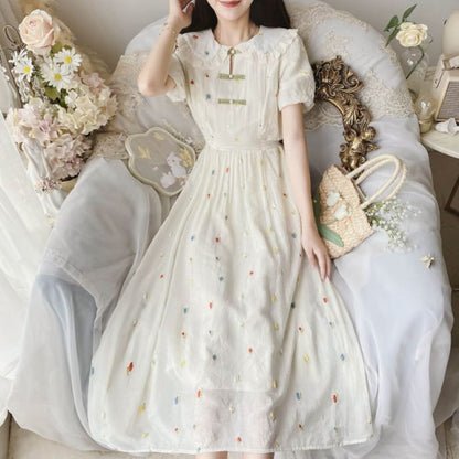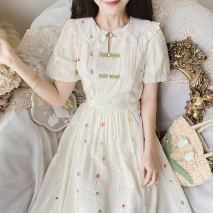 Kurzärmliges Midikleid in A-Linie mit Rüschenkragen, Blumenstickerei