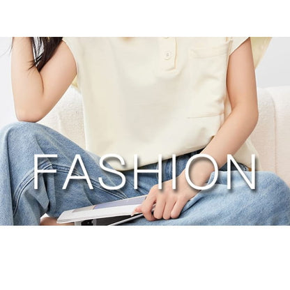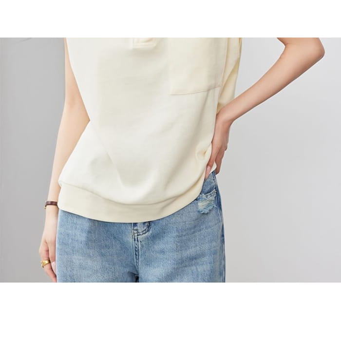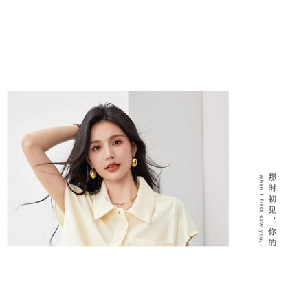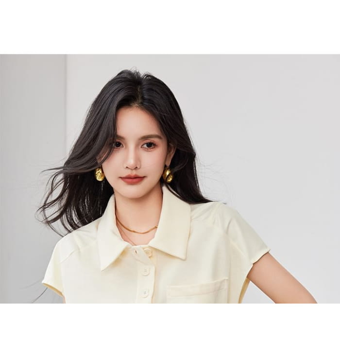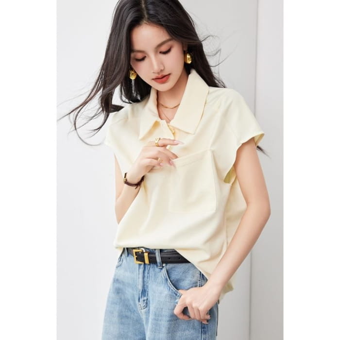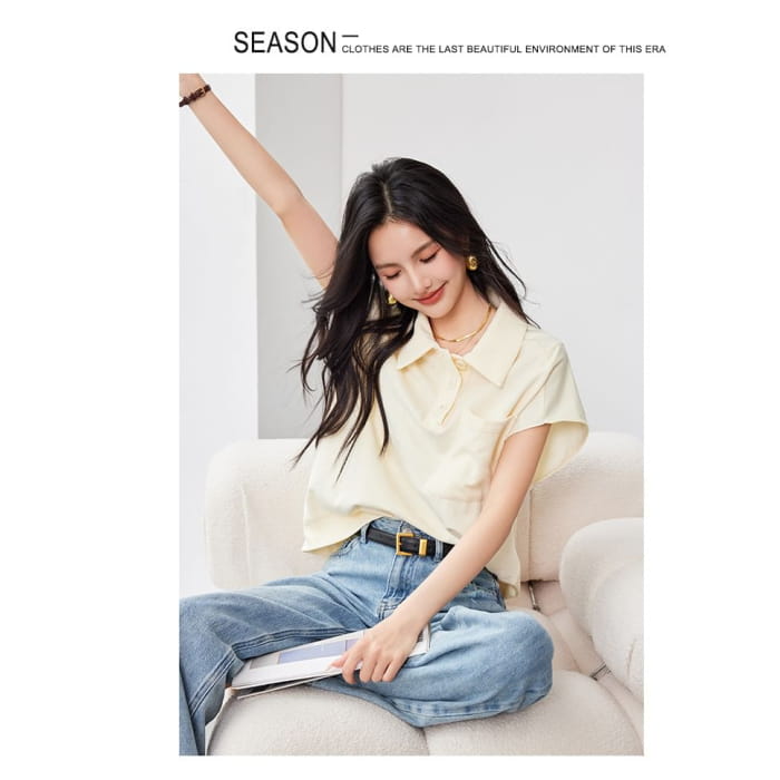 Kurzärmliges, einfarbiges, lockeres Poloshirt mit Tasche
